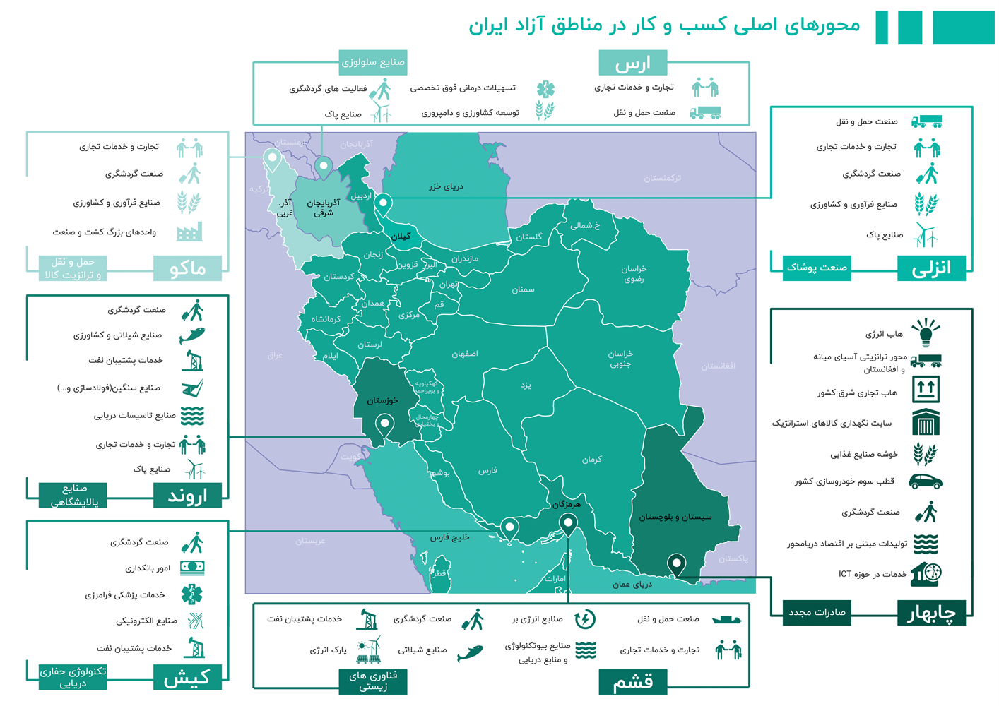 تمرکز اصلی در توسعه این مناطق، بر تشویق صادرات کالاهای صنعتی و تبدیلی، جذب سرمایه و فناوری‌های خارجی، تقویت کانال‌های ترانزیتی ...
